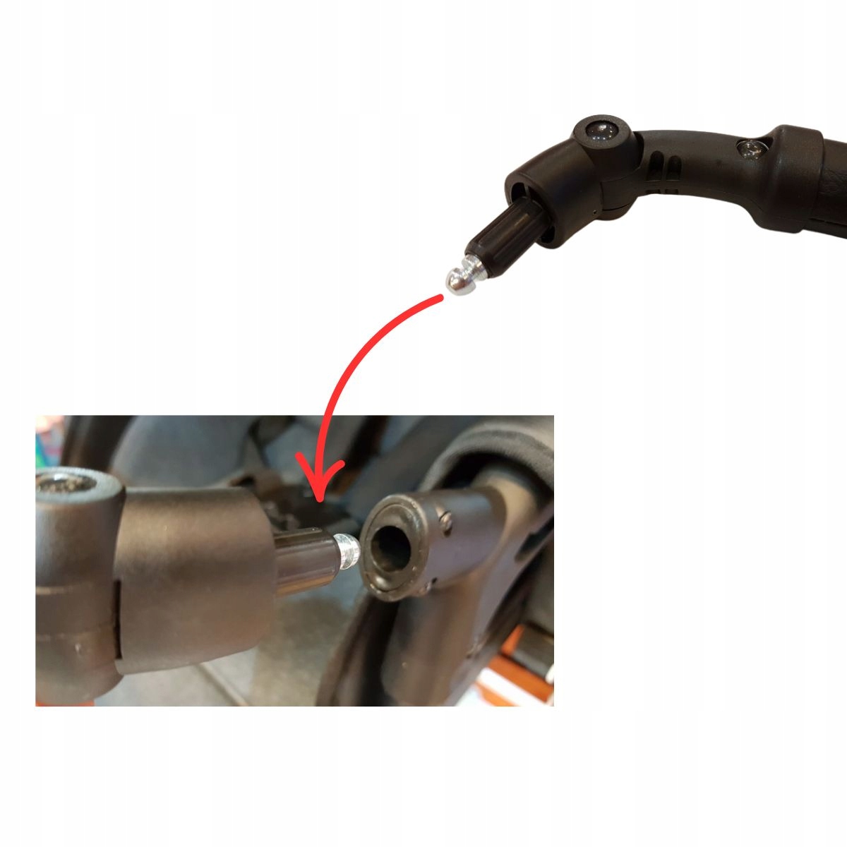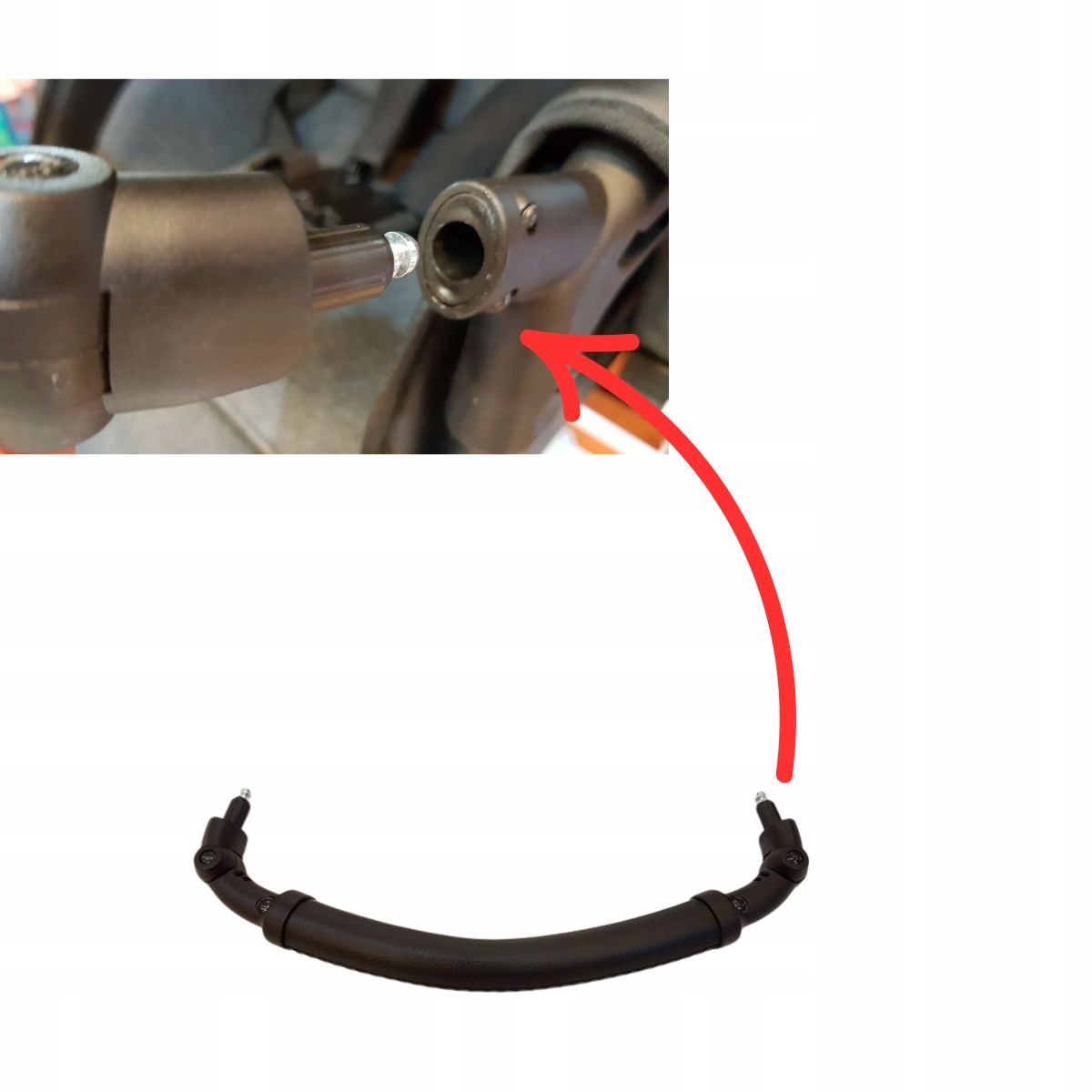 Pasuje również do innych wózków wykorzystujących identyczny system montażu na tzw. "wsuwki" widoczny na zdjęciach detali.