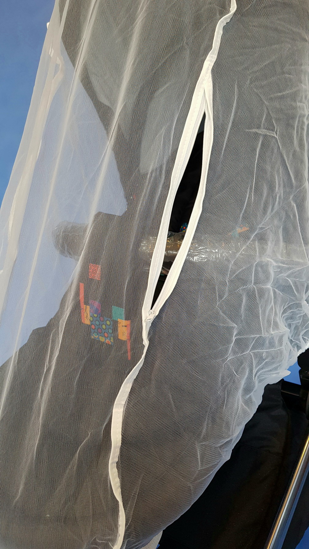 Moskitiera jest super i warta swojej ceny - bardzo gęsta a dodatkowy zamek umożliwia łatwy dostęp do wnętrza wózka i dziecka. Polecam!