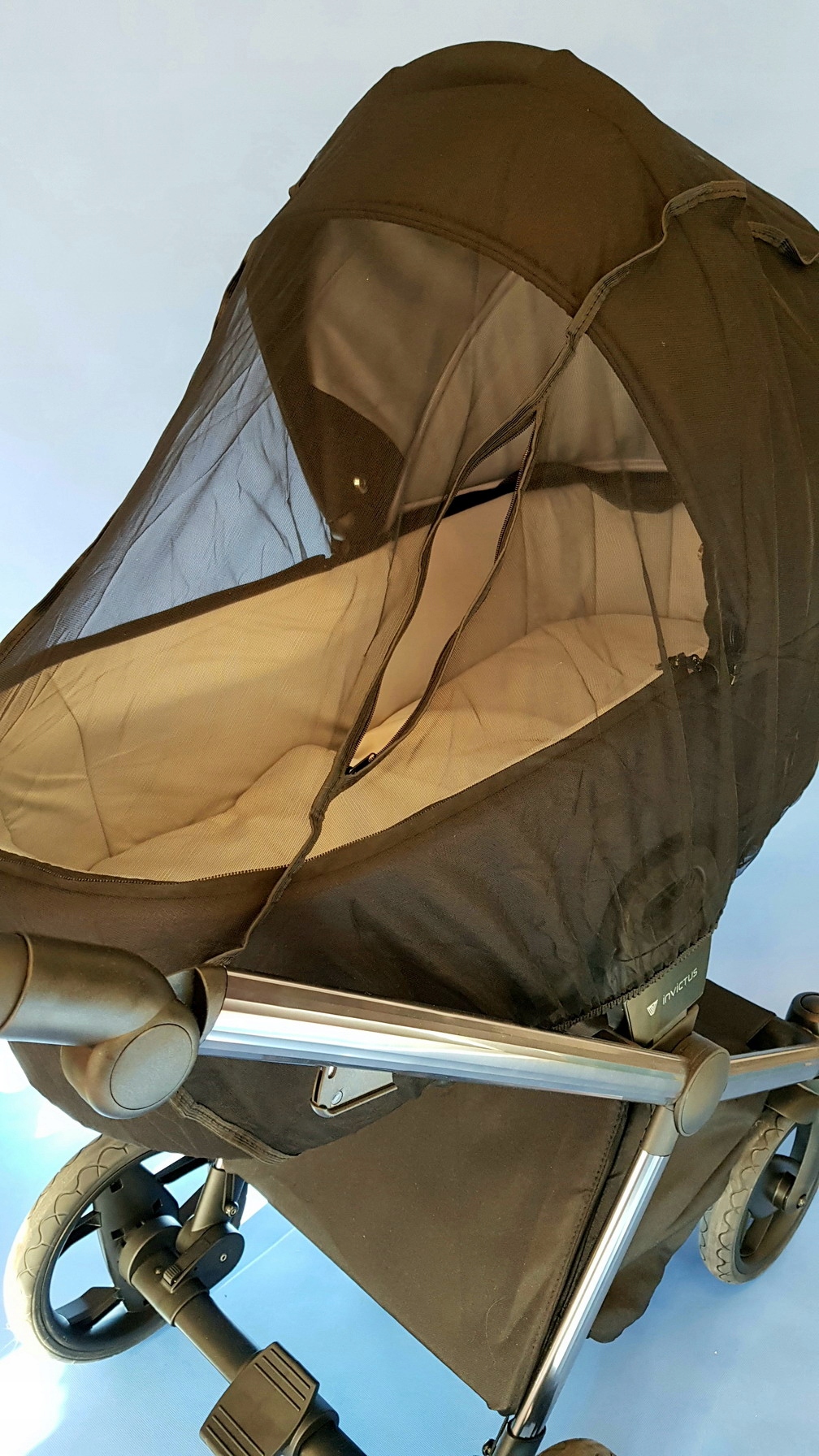 Niezastąpiona osłona na letnie dni. Czarna siatka nie tylko świetnie wygląda na wózkach Junama, ale przede wszystkim gwarantuje bezpieczeństwo maluszka przed wszelkimi insektami.