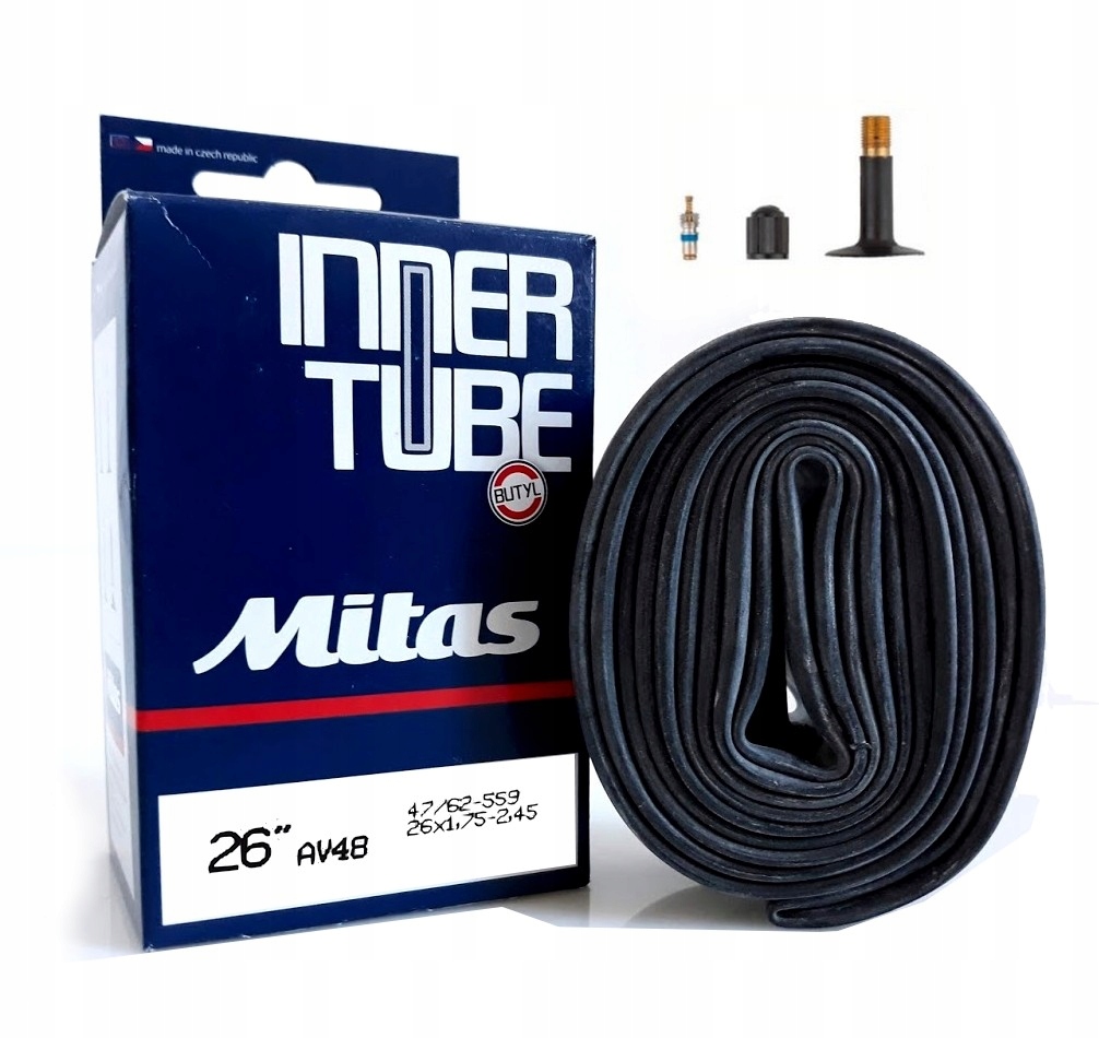 Dętka rowerowa Mitas AV48 26x1,75-2,45 47/62-559, prosty wentyl samochodowy