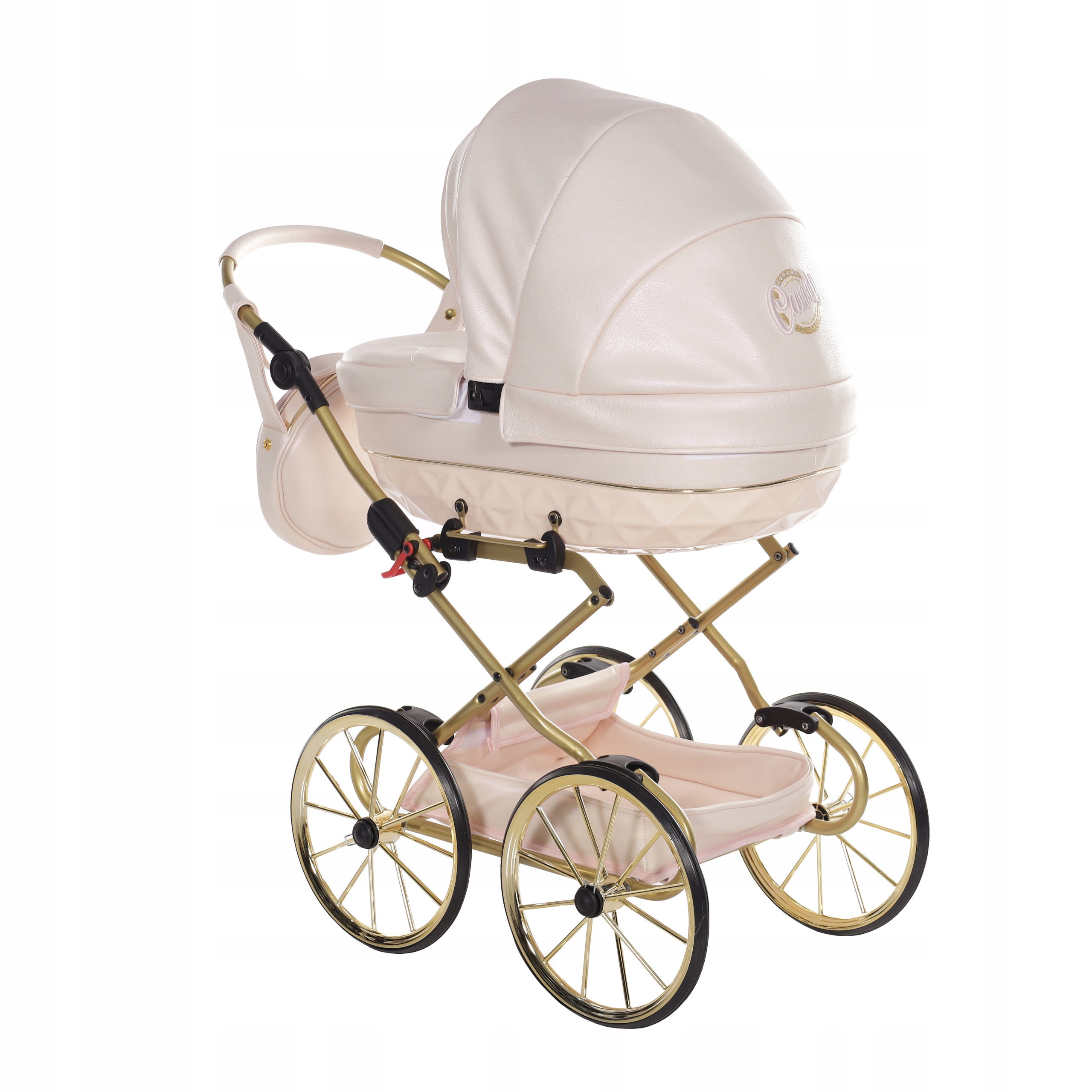 - Gondola wózka jest odwzorowaniem dużego wózka dziecięcego, wykonana jest z wysokiej jakości tworzywa.