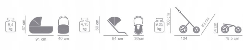 Akcesoria w zestawie: Folia przeciwdeszczowa, Mata do przewijania, Materac, Moskitiera, Osłona na nóżki, Torba do wózka, Uchwyt na kubek