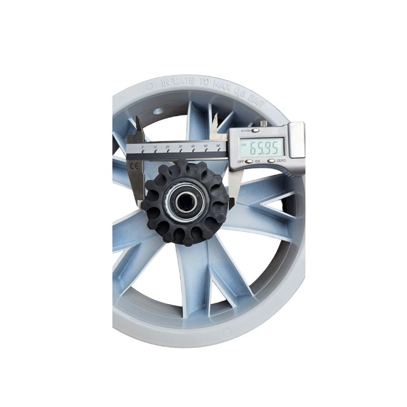 W przednich kółkach montujemy tulejki dopasowane do Twojego wózka. Zmierz grubość swojej ośki w przednim widelcu i napisz w uwagach: