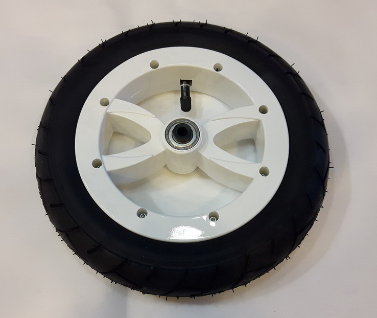 Gotowe do montażu, kompletne koło przednie na plastikowej, białej feldze.