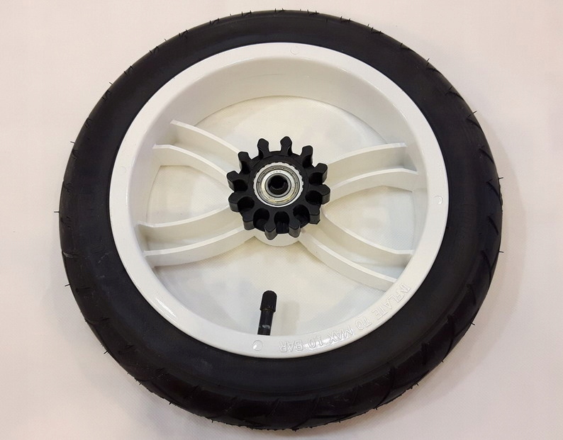 Kompletne kółko tylne, które łączy wytrzymałość z doskonałą amortyzacją. Wyposażone w wysokiej jakości oponę oraz podwójne łożyska kulkowe, co gwarantuje lekkie prowadzenie wózka nawet pod dużym obciążeniem.