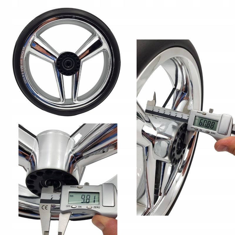 Precyzyjne wykończenie felgi i opony. Wewnętrzna strona kółka posiada standardową zębatkę hamulcową Junama. Prosimy o porównanie jej układu ze swoim starym kółkiem.