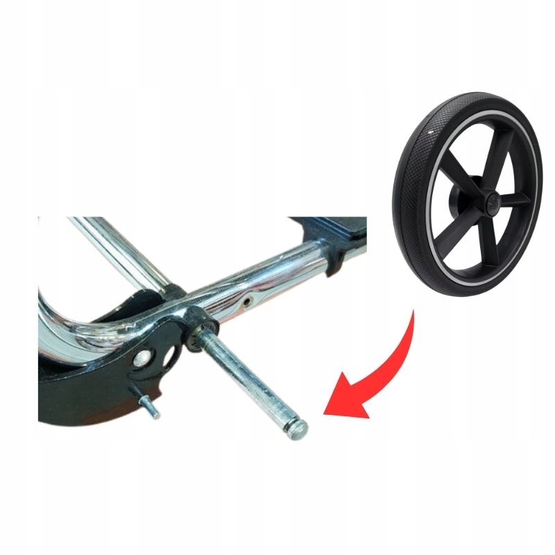 Instalacja kółka na stelażu zajmuje kilka sekund. Pasuje na każdą tylną ośkę o grubości 10 mm z systemem blokady.