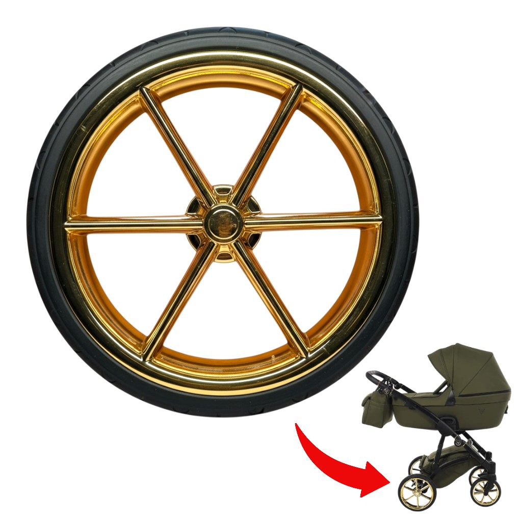 Oryginalne koło tylne, zaprojektowane specjalnie dla ekskluzywnej serii wózków Tako oraz Junama IMPERIAL. Produkt gwarantuje idealne dopasowanie do konstrukcji tylnej ramy, przywracając pełną sprawność i luksusowy wygląd Twojego wózka.