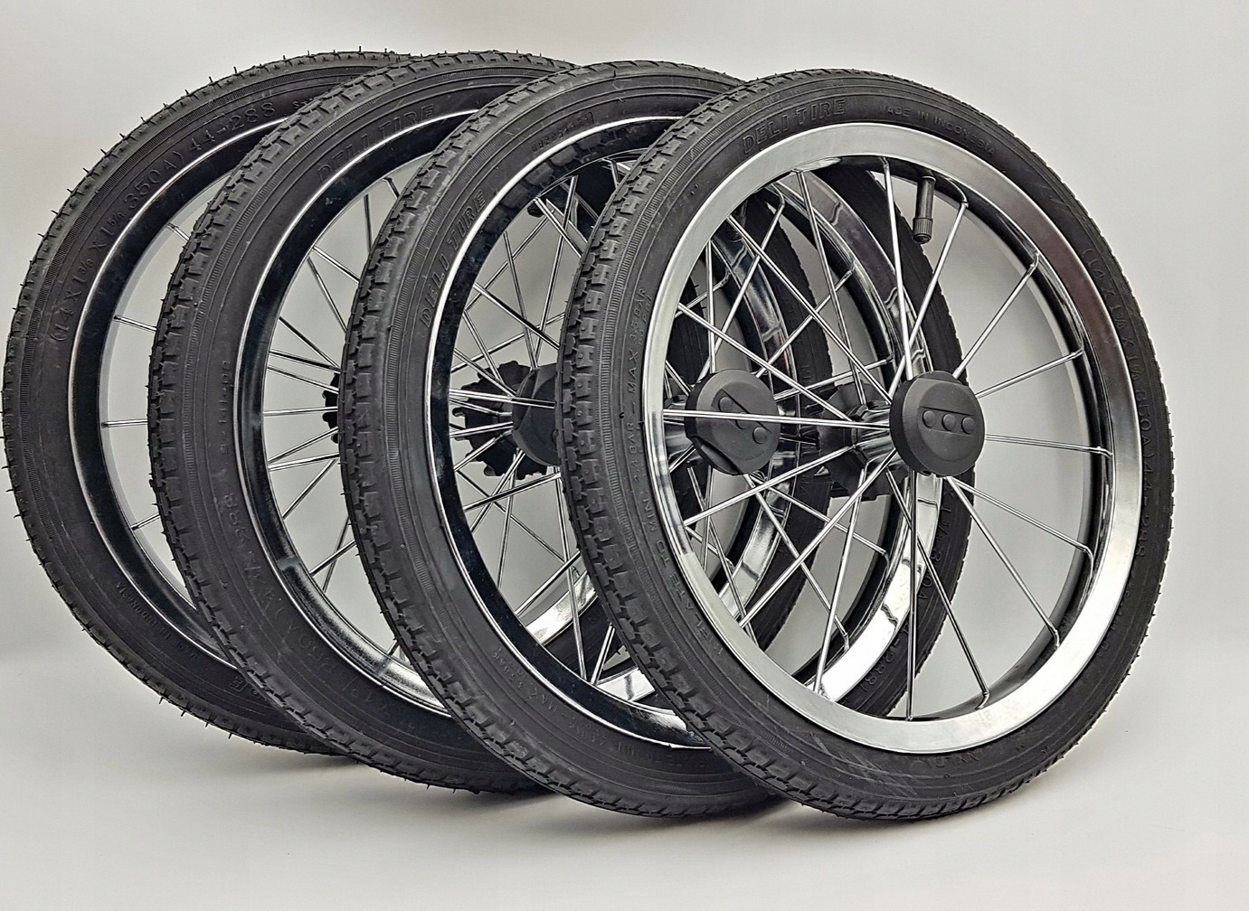Ekskluzywny komplet 4 pompowanych kół o średnicy 36 cm (14 cali), stworzony z myślą o wózkach klasycznych i retro. Idealnie pasują do modeli takich jak Roan Coss Classic, Tako Dalga oraz wielu innych konstrukcji na tradycyjnych wahaczach.