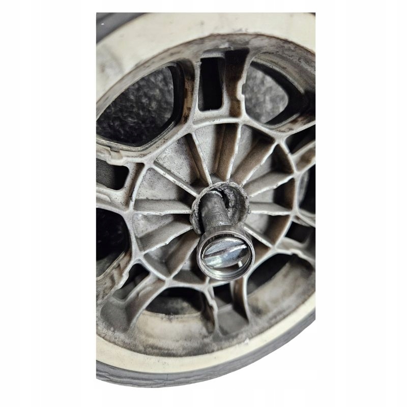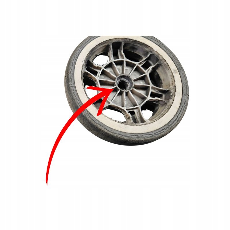 Przy wymianie zwróć uwagę na stan osi. Często zdarza się, że stare łożysko rozpada się, pozostawiając swoją zewnętrzną bieżnię wewnątrz kółka lub wewnętrzną na osi (jak na zdjęciach poniżej). Należy je bezwzględnie usunąć przed montażem nowych części.