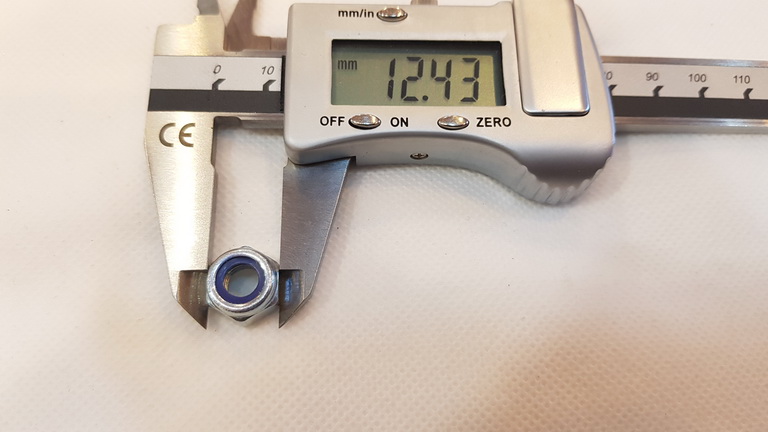 Prawidłowy dobór nakrętki jest kluczowy dla trwałości gwintu na osi. Prezentowany model został zweryfikowany suwmiarką pod kątem standardów stosowanych w branży wózków dziecięcych. Wewnętrzna wkładka hamująca "wgryza się" w gwint śruby, tworząc trwałe połączenie, które można rozkręcić tylko przy użyciu klucza.