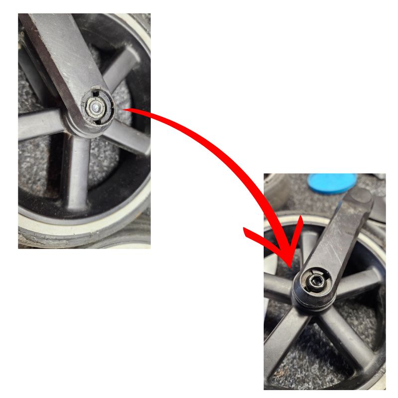 - Montujemy nową, stalową oś skręcaną (umożliwia ona łatwy serwis w przyszłości)