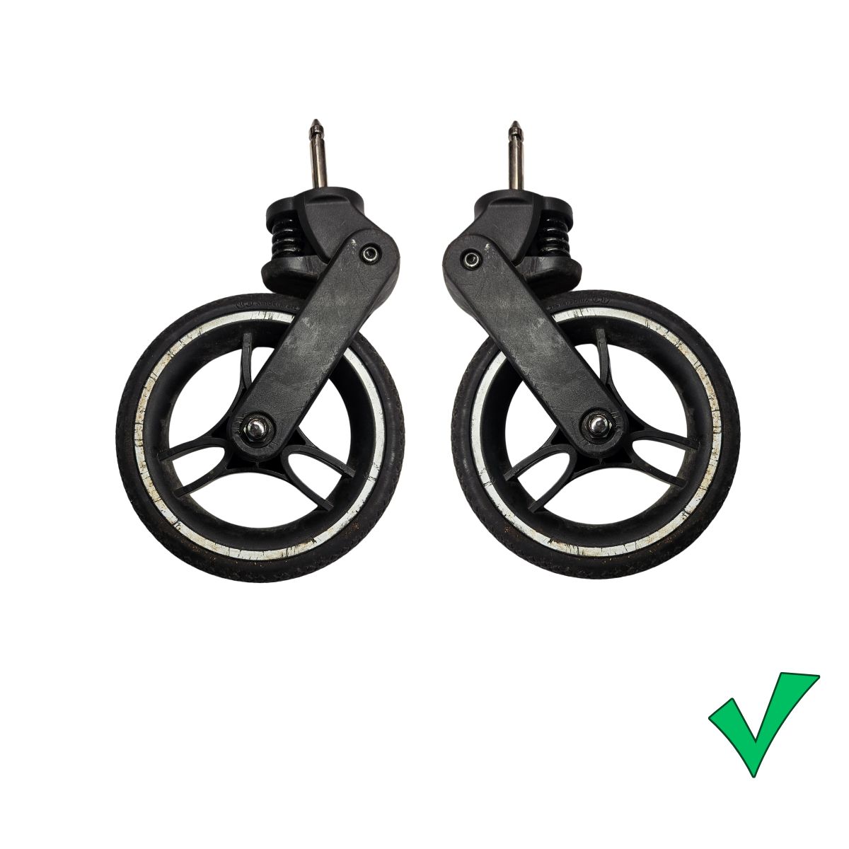 Usługa polega na kompleksowej regeneracji dwóch przednich kółek zamontowanych w widełkach wózka.