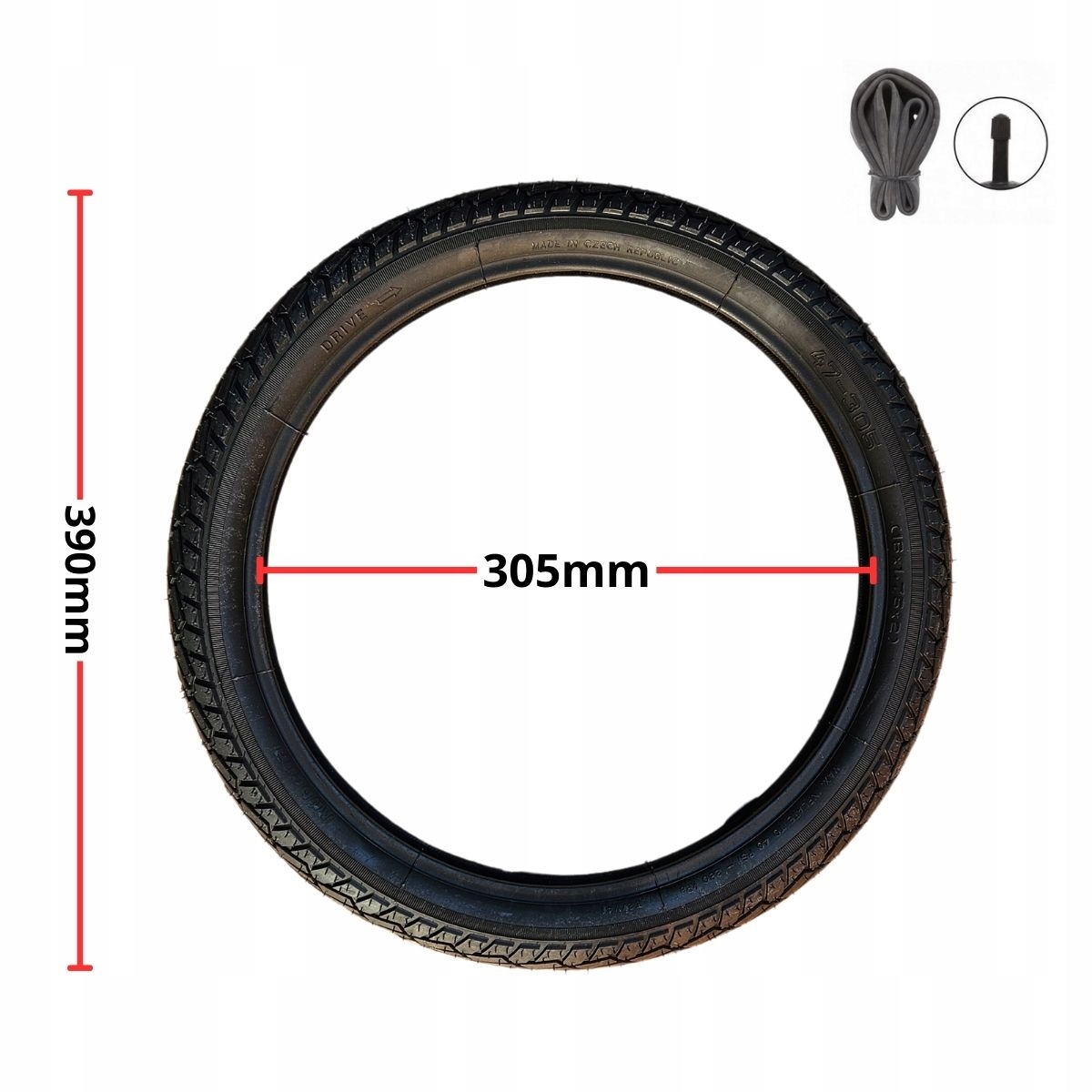 Dołączona do zestawu dętka idealnie odpowiada wymiarom opony. Wykonana z trwałego butylu, długo utrzymuje ciśnienie i jest odporna na starzenie.