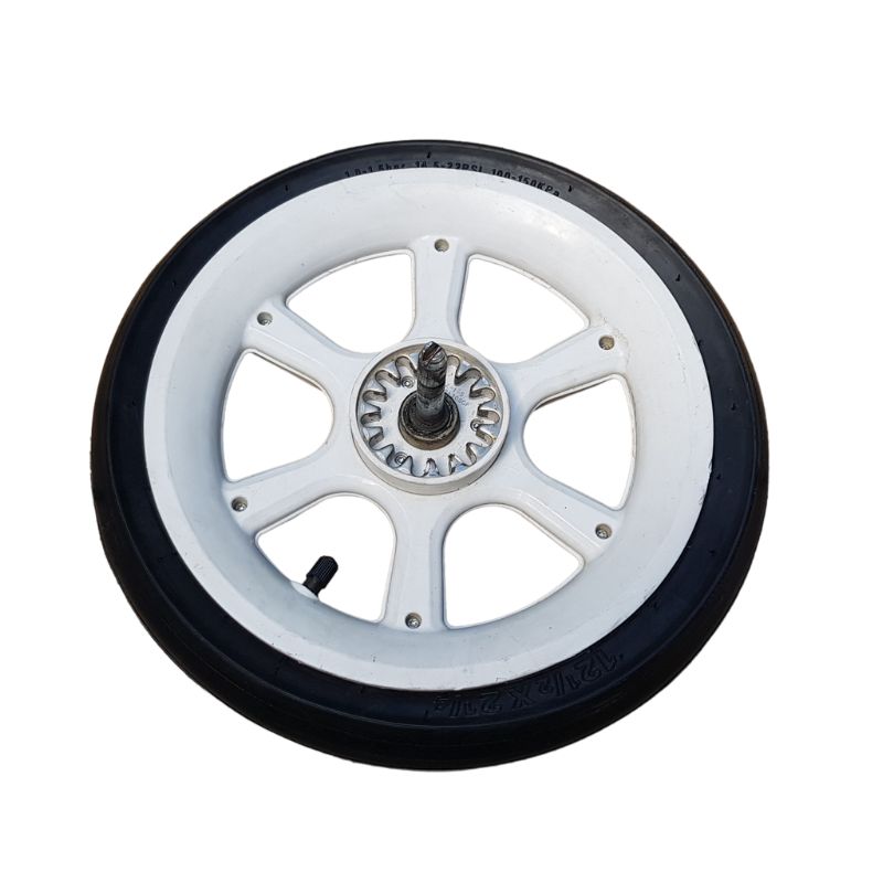Długo szukaliśmy jakiegoś zamiennika i udało nam się taki znaleźć i zamontować na fabrycznym kółku.