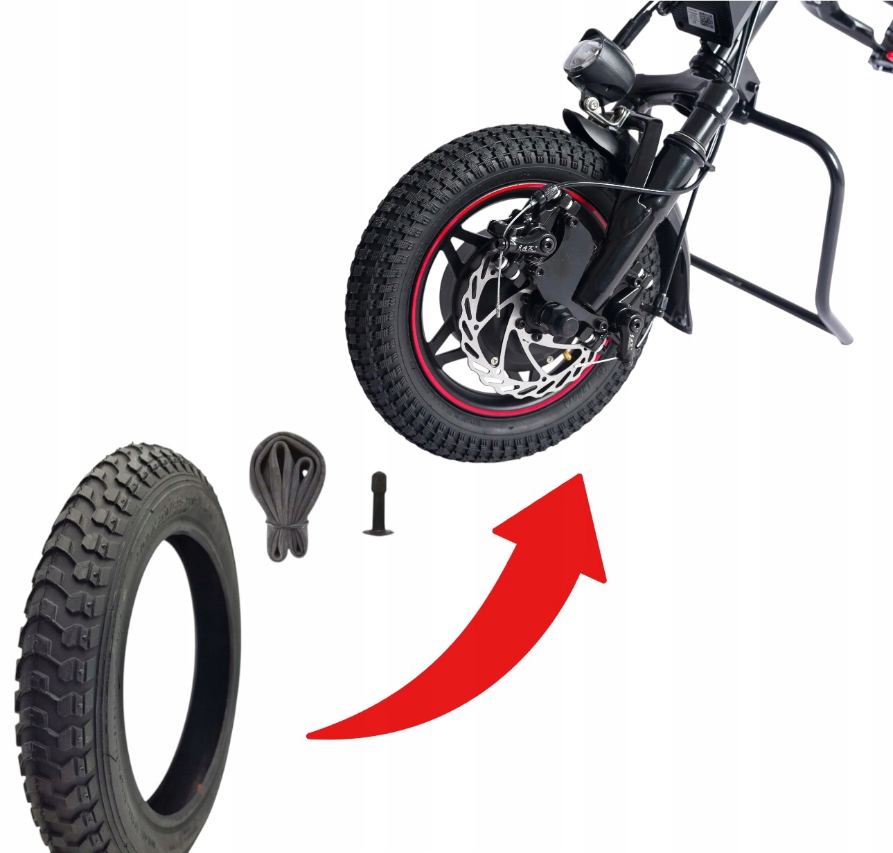 Opona i dętka 12 cali do przystawki wózka inwalidzkiego | Prosty wentyl
