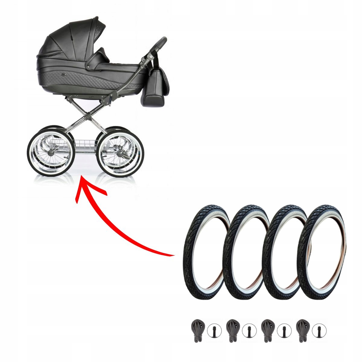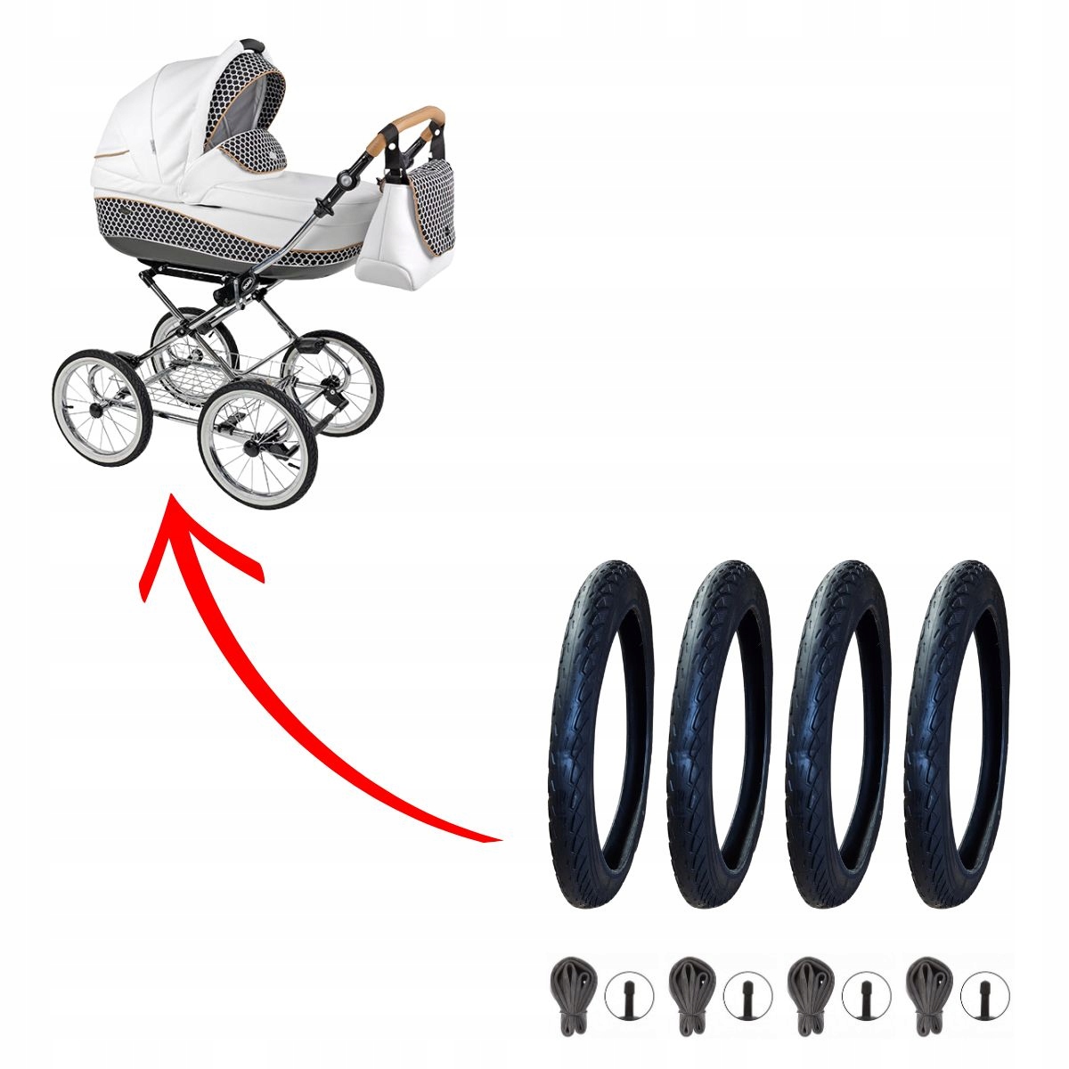 OPONY i dętki do wózka 14 cali, 14x1 3/8 x1 5/8 (44-288) - komplet 4szt Czarno-Biały