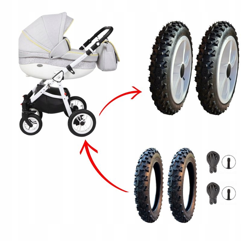 Po zamontowaniu opon i dętek tak będą prezentować się Twoje tylne kółka od wózka.