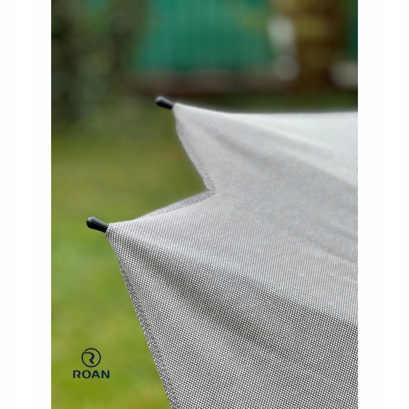 Poprzez zastosowanie specyficznej struktury materiału z której wykonana jest parasolka, zdjęcie nie oddaje jej rzeczywistego koloru. Proszę mieć na uwadze, że jest to parasolka wykonana z dokładnie takiej samej tkaniny jak wózek firmy Roan w tym kolorze.
