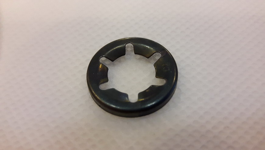 Podkładka posiada nacięcia tworzące elastyczne ząbki skierowane do wewnątrz. Podczas nabijania na oś, ząbki odginają się, pozwalając na ruch w jedną stronę, a przy próbie zdjęcia – klinują się na gładkiej powierzchni metalu. To rozwiązanie eliminuje konieczność gwintowania osi czy stosowania zawleczek, co znacząco ułatwia serwisowanie podwozia.