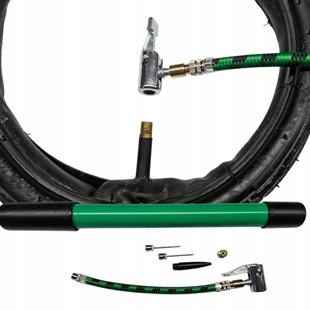 Masz dość szukania stacji benzynowej lub siłowania się z nieporęcznymi pompkami? Ten praktyczny zestaw został stworzony specjalnie do obsługi wózków dziecięcych, rowerków i hulajnóg.