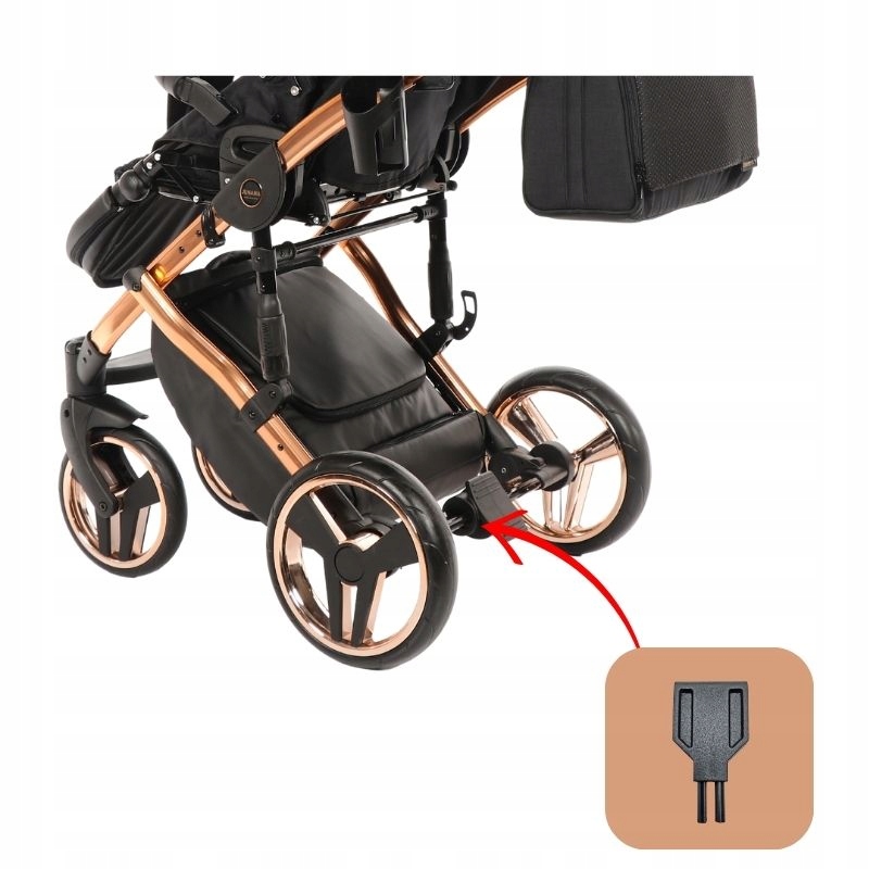 Zestaw naprawczy znajduje się w centralnej części belki hamulcowej, bezpośrednio pod pedałem hamulca. Ślizg wraz z popychaczami odpowiada za przeniesienie siły nacisku na linki lub bolce blokujące zębatki w kołach. Regularna konserwacja tego elementu zapobiega zacinaniu się wózka.