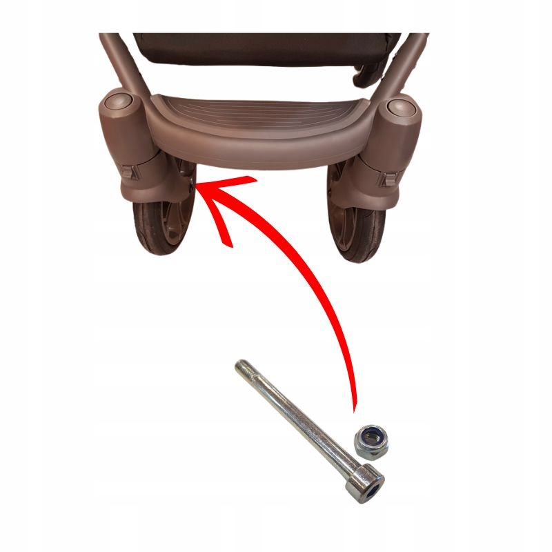 Ośka o średnicy 8 mm i długości całkowitej 80 mm to standardowy element montażowy kół przednich w wielu modelach wózków wielofunkcyjnych.