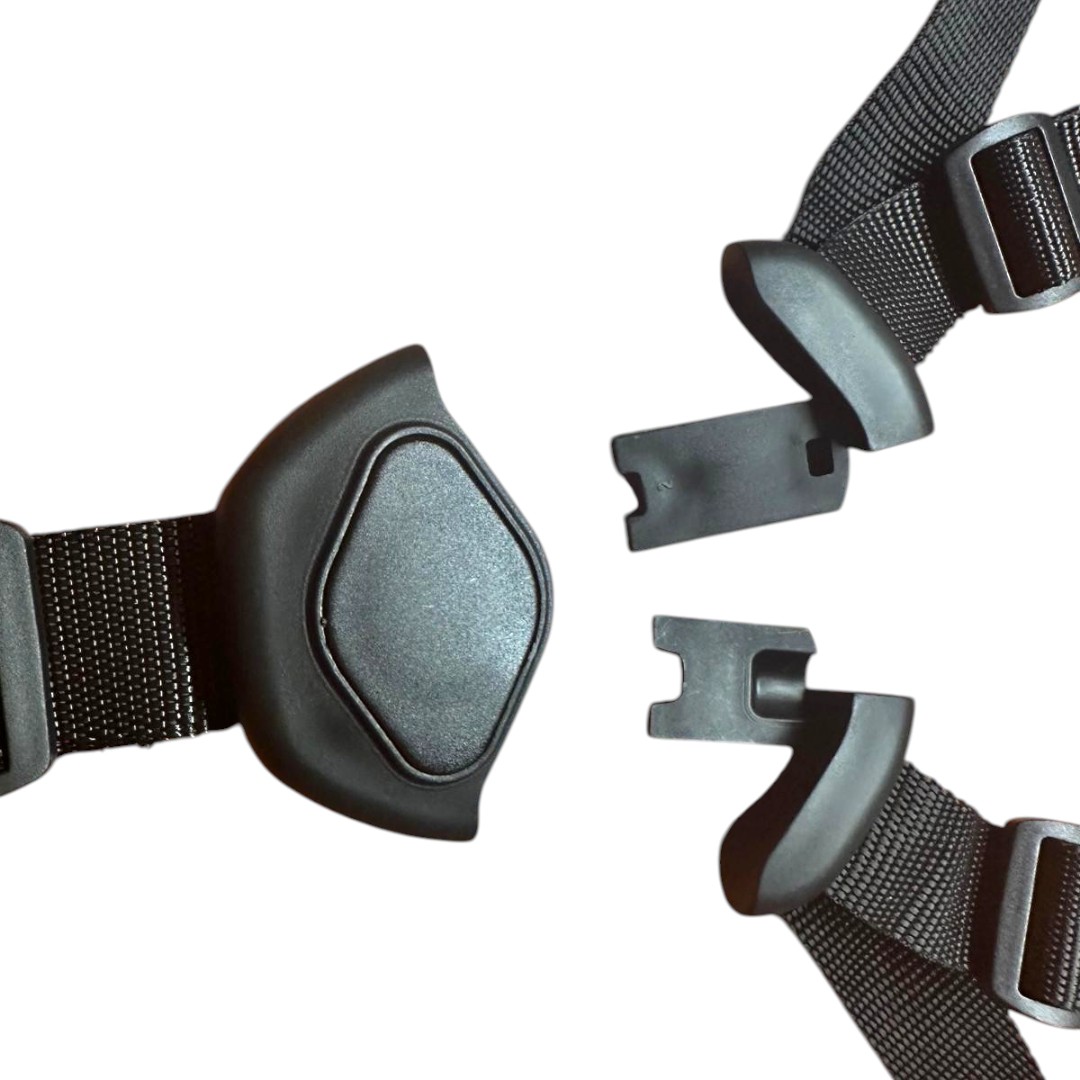 Zestaw zapewnia dziecku pełną stabilizację podczas spacerów, a wytrzymałe pasy są odporne na rozciąganie i intensywne użytkowanie. Dzięki uniwersalnemu systemowi mocowań, szelki pasują również do większości innych spacerówek marek Junama oraz Tako.