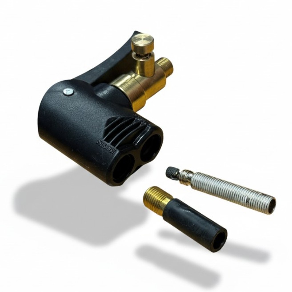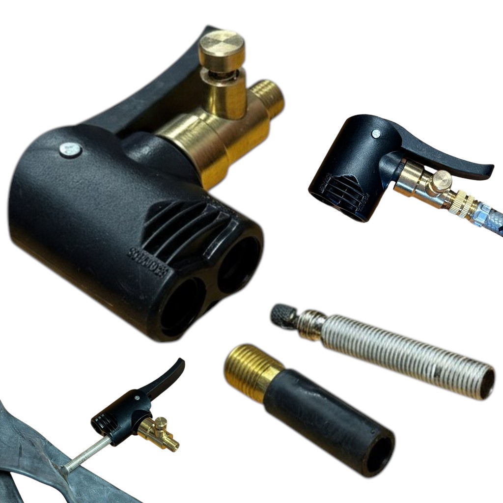 Zapomnij o szukaniu przejściówek. Ta głowica to profesjonalna szybkozłączka, która przyspiesza pracę przy serwisowaniu ogumienia wózków, rowerów i samochodów. Dwustronna konstrukcja pozwala na błyskawiczną zmianę typu zaworu.