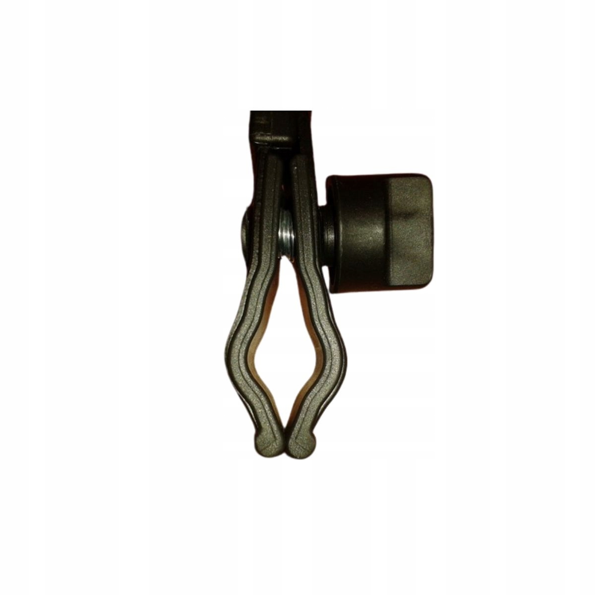 Tak prezentuje się zacisk mocujący uchwyt na stelażu wózka.