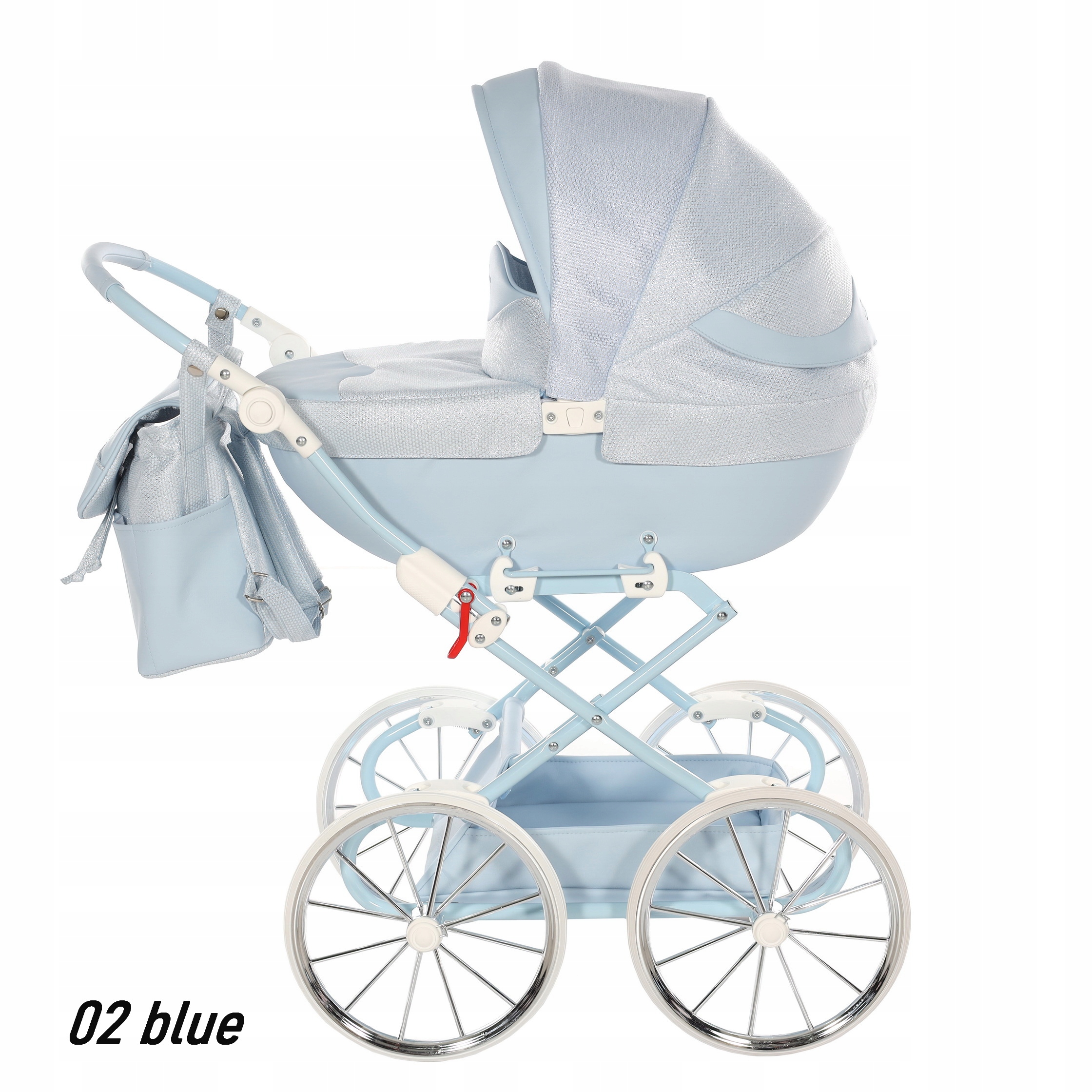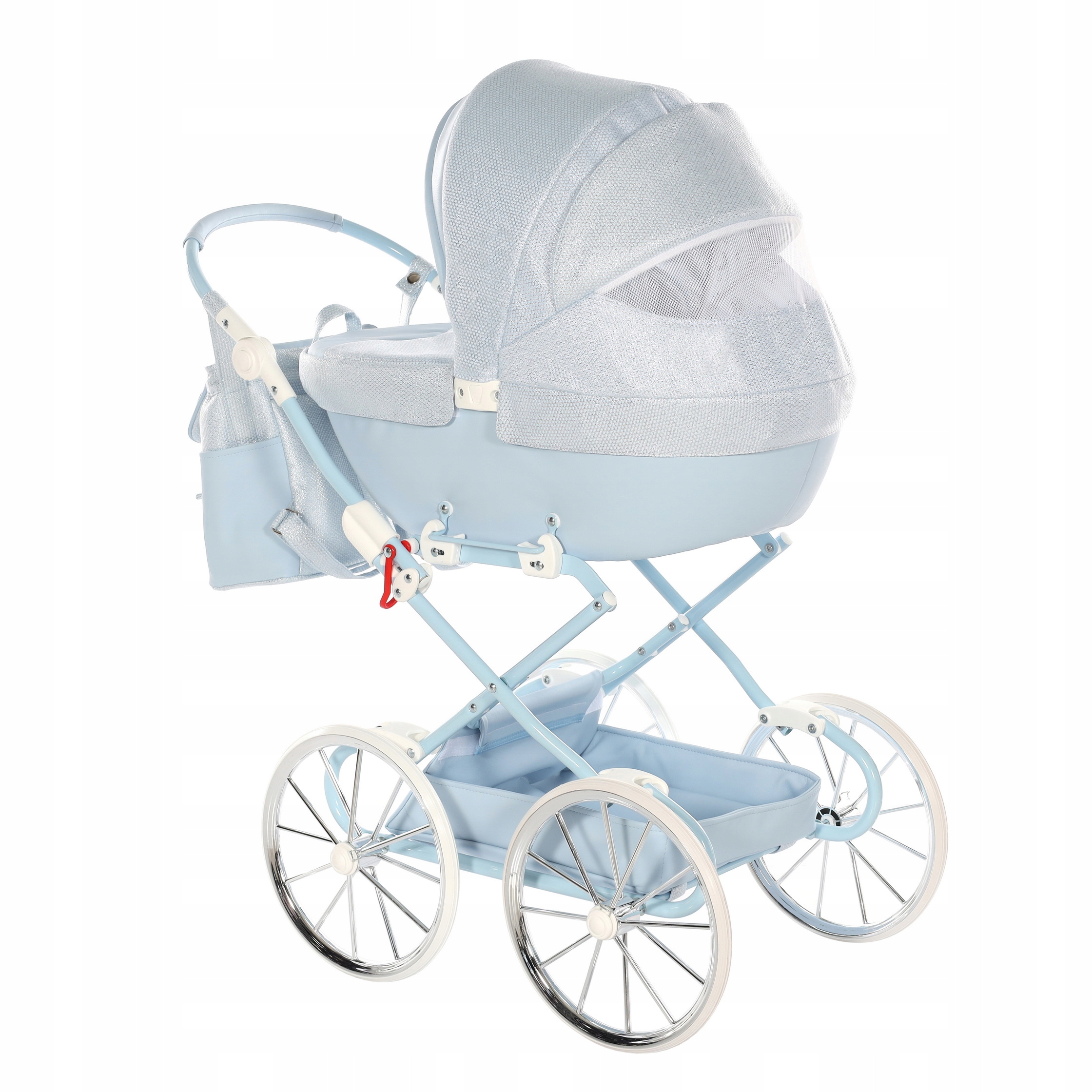 Model Dolce Mini 02 od polskiego producenta Tako to połączenie luksusowej błękitnej ekoskóry z klasycznym designem retro. Idealny dla dzieci kochających stylowe spacery ze swoimi lalkami.