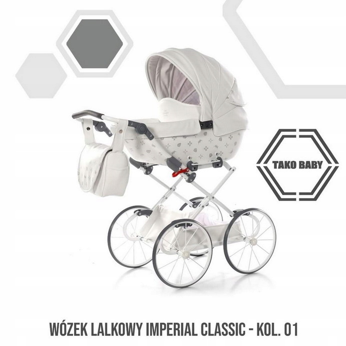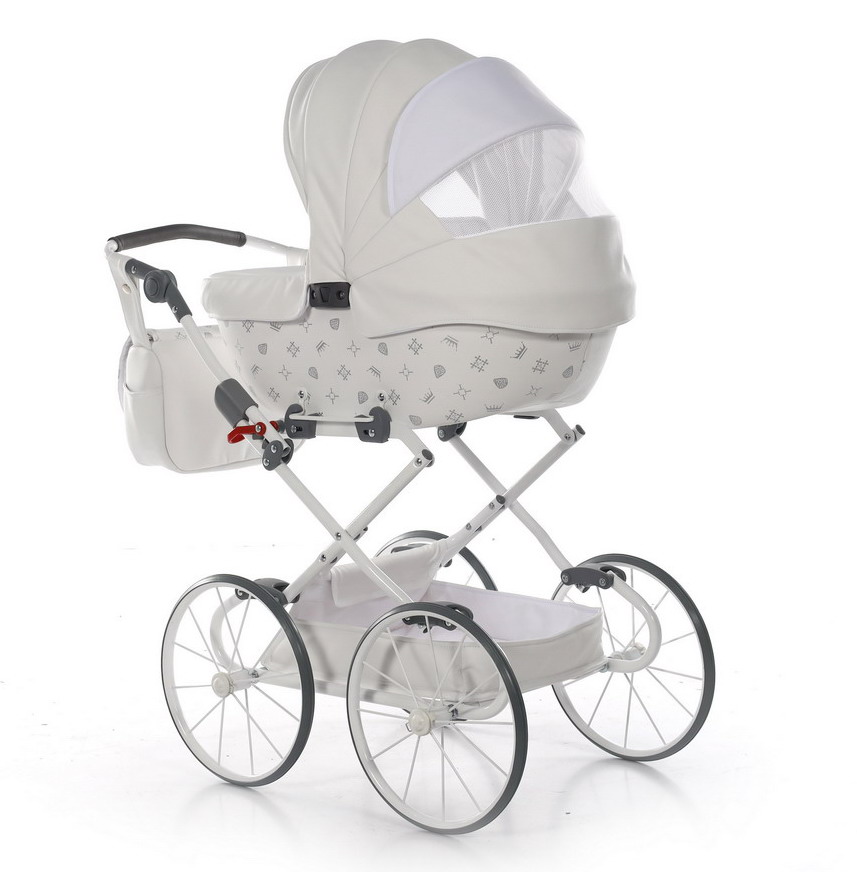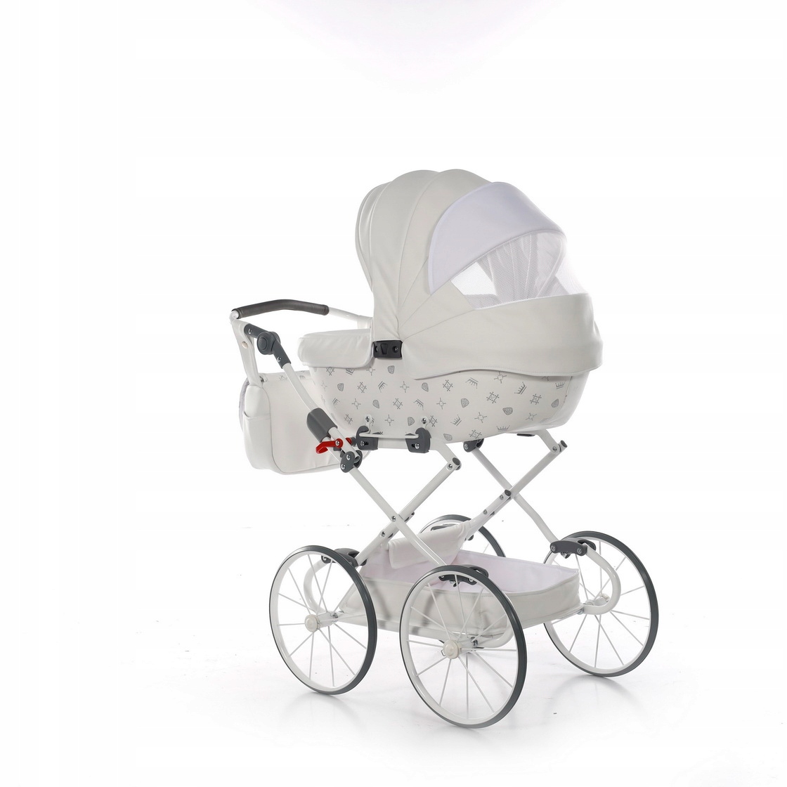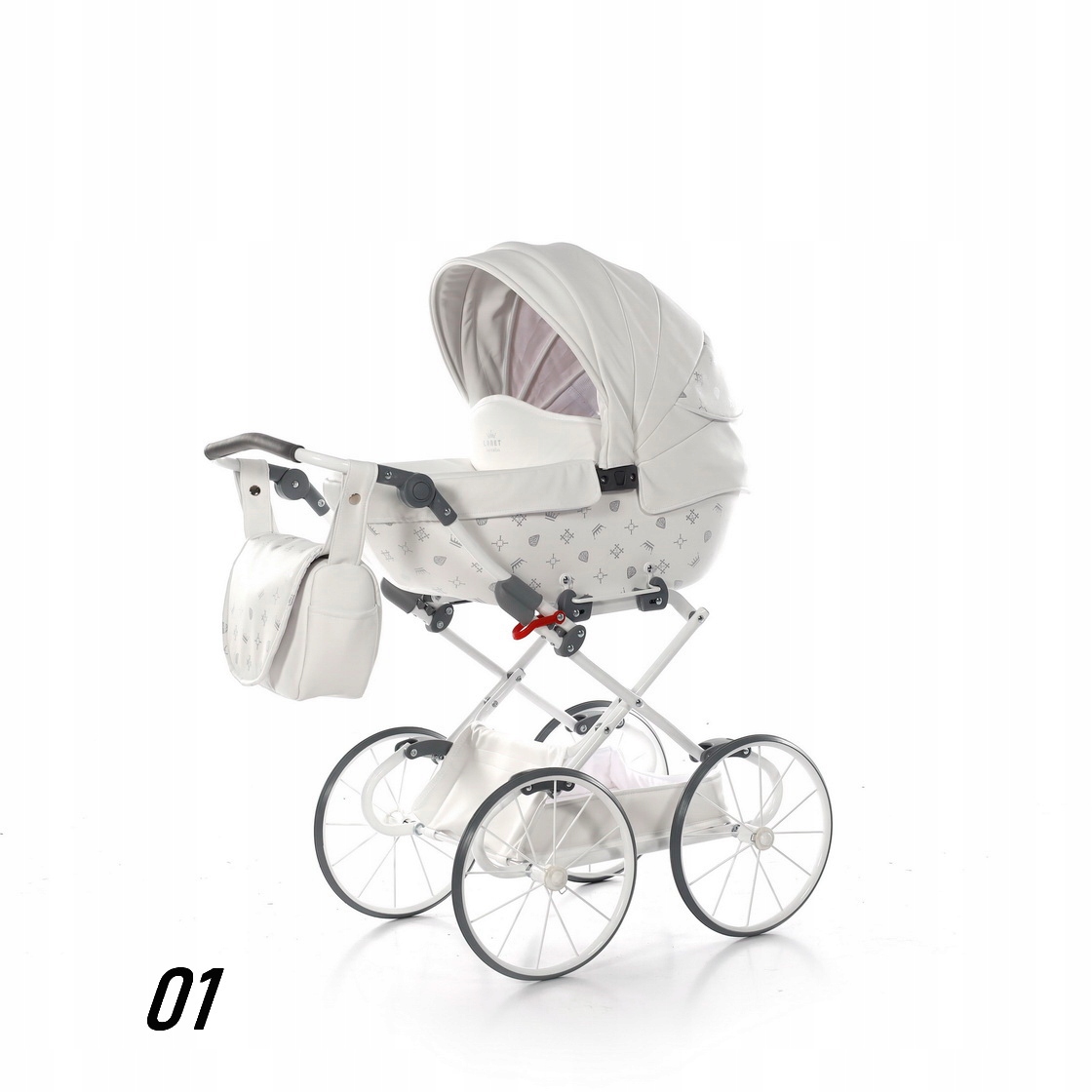 Model IMPERIAL Mini 01 w wersji ze srebrnymi detalami to połączenie nowoczesności z klasyczną formą wózka retro. Wykonany z luksusowej, białej eko-skóry, prezentuje się niezwykle lekko i elegancko.
