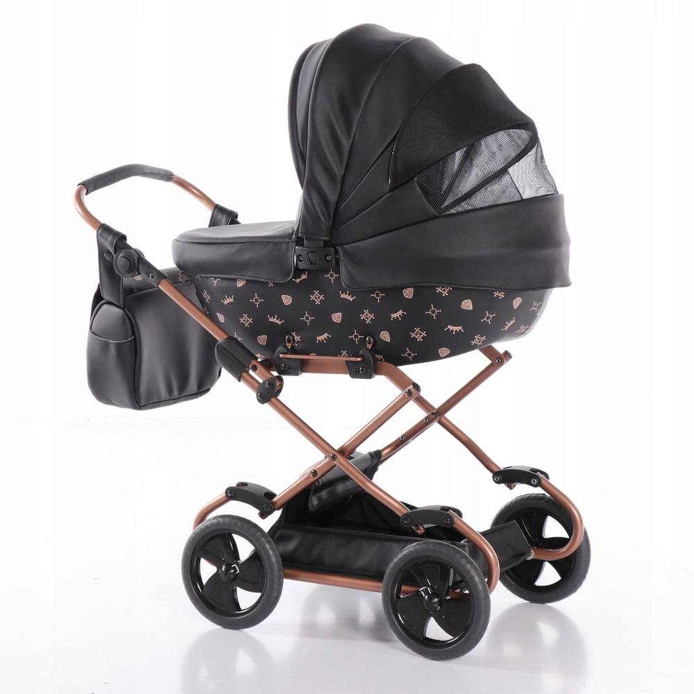 Wersja Imperial Mini Kol. 04 to połączenie głębokiej czerni z eleganckimi, miedzianymi detalami. Ten polski wózek dla lalek to idealna propozycja dla małych dam, które cenią sobie styl i najwyższą jakość wykonania.