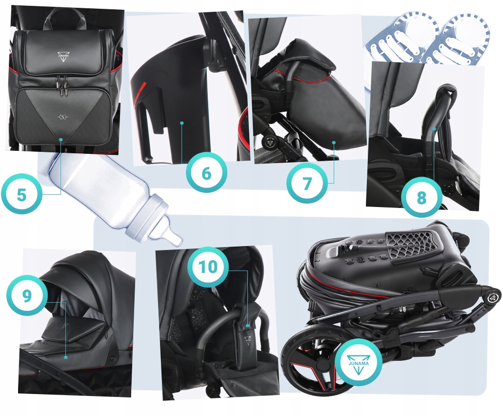 * zdjęcia cech wózka są poglądowe i mogą odbiegać od ich oryginalnego wyglądu. Mają one na w celu zobrazowanie wybranych, najważniejszych zalet wózka Junama S-CLASS.