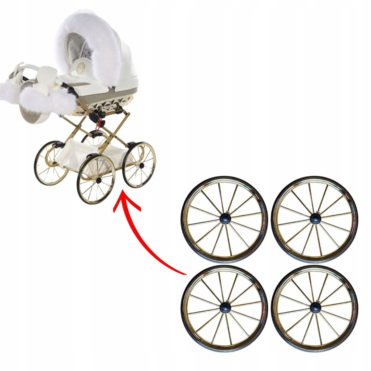Kółka do wózka lalkowego retro JUNAMA 26cm, na oś 8mm - 4szt, ZŁOTO-BIAŁE