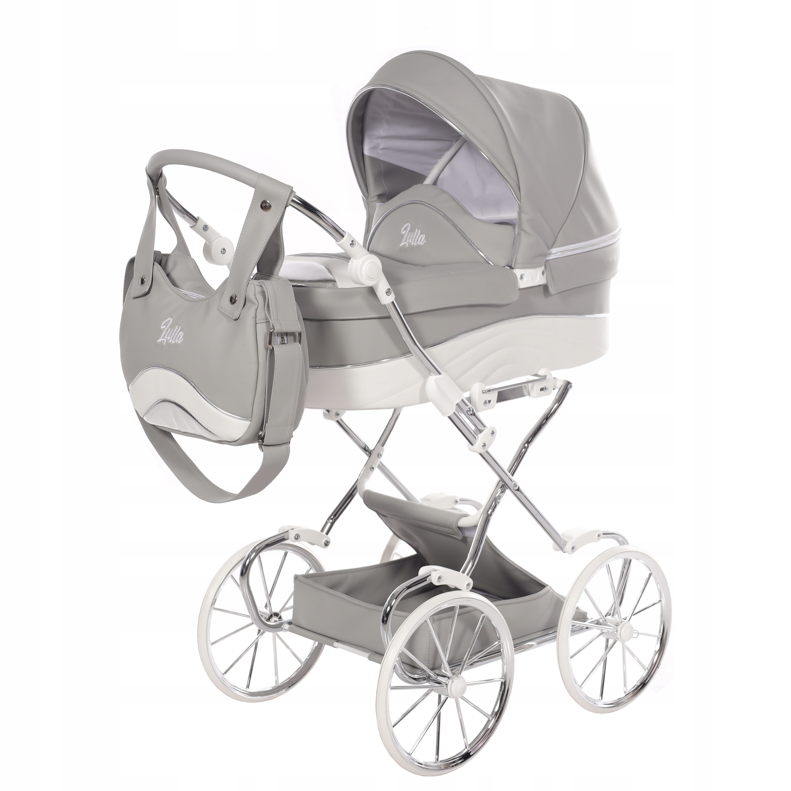 WÓZEK dla lalek Junama Lulla 05 szary/biały SZARY Lalkowy RETRO DUŻE KOŁA