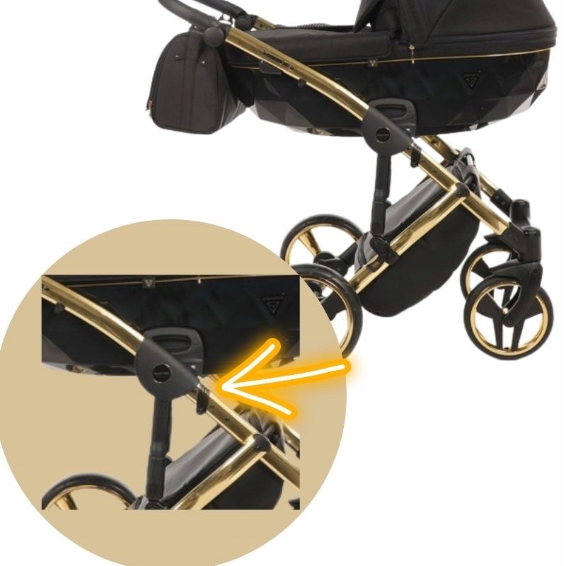 Pokazane przykładowe miejsce w którym znajduje się zawias w stelażu wózka.