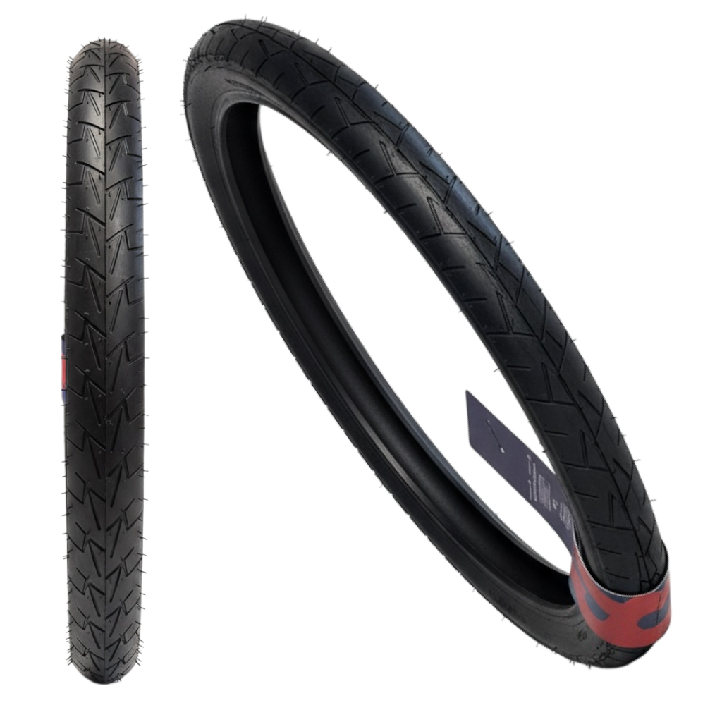 Kompletny zestaw serwisowy do kół 14-calowych: opona drutowana Comfort V57 oraz dopasowana dętka z prostym wentylem.