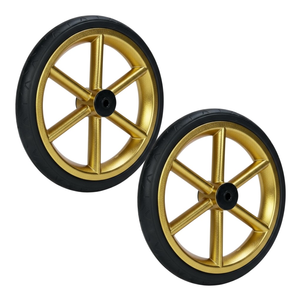 Oryginalny zestaw kół dedykowany do serii IMPERIAL. Złote wykończenie felg to znak rozpoznawczy tej linii, który nadaje wózkowi niepowtarzalny, prestiżowy wygląd.