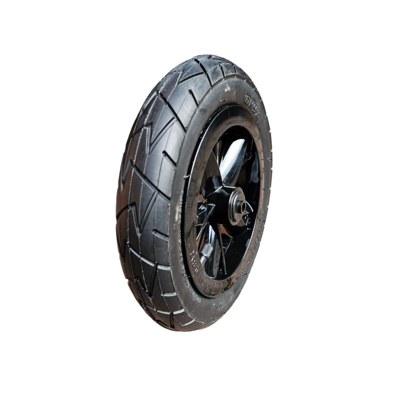 Zestaw składa się z kompletnych, napompowanych kół z dętką i oponą. Wszystkie piasty są podwójnie łożyskowane, co zapewnia płynność prowadzenia wózka.